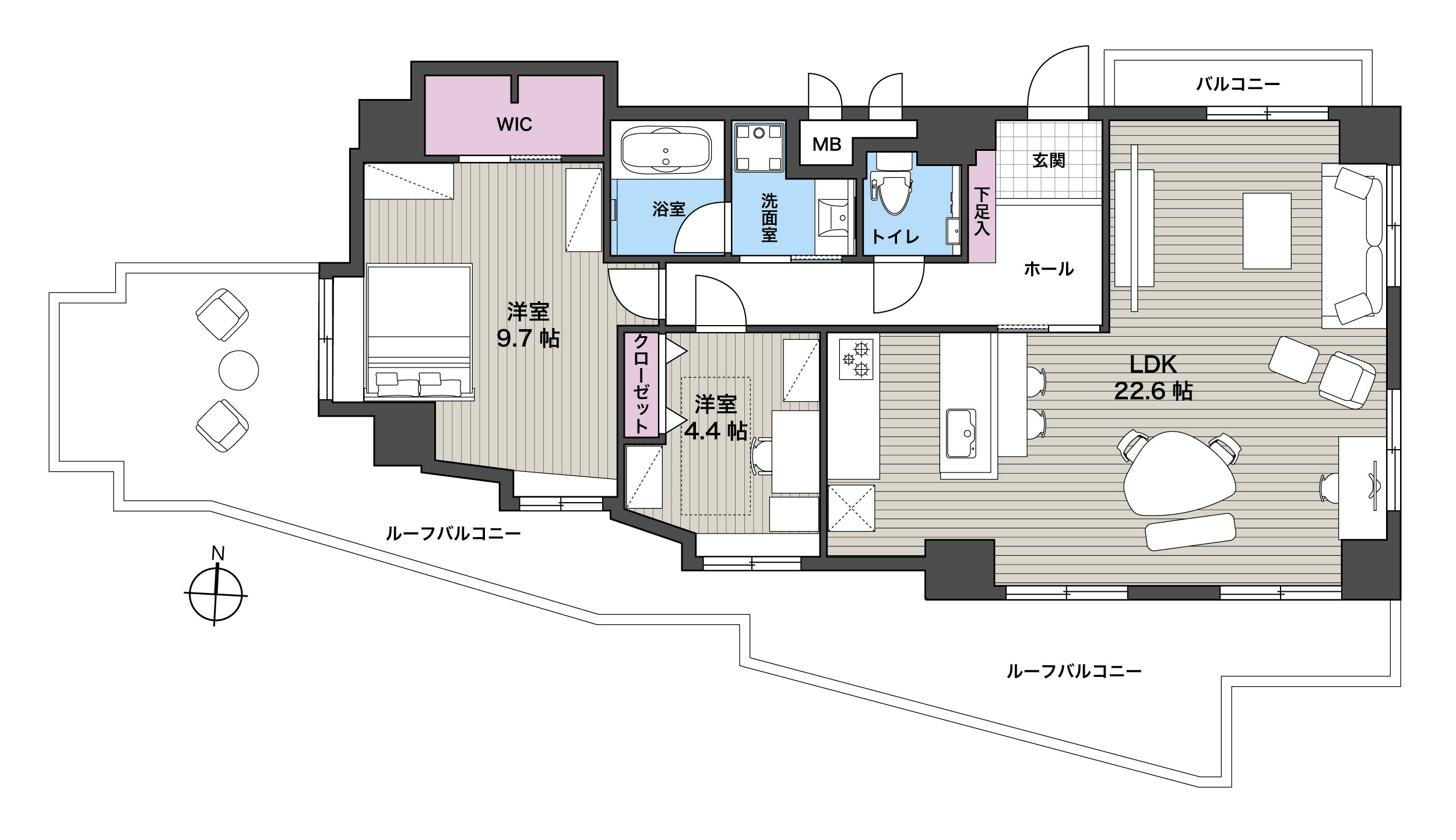 From the master bedroom, marvel at sunset views of Mt Fuji; or step out onto the 180° wrap around balcony from the LDK or master bedroom to have a relaxing drink after a long day while gazing out at the sprawling city scape.