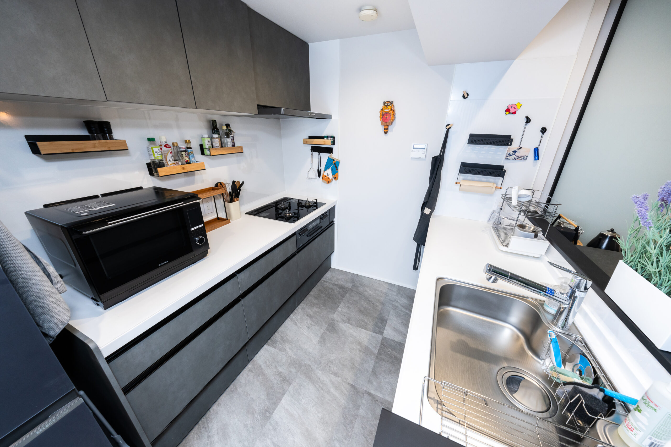 New high end appliances abound throughout— with an extra large Haier fridge and freezer, Toshiba combo oven-microwave, Zojirushi rice cooker and a Clean-Up dishwasher in the kitchen; as well as a Toshiba Zaboon combo washer-dryer in the bathroom and Toto washlet in the restroom.