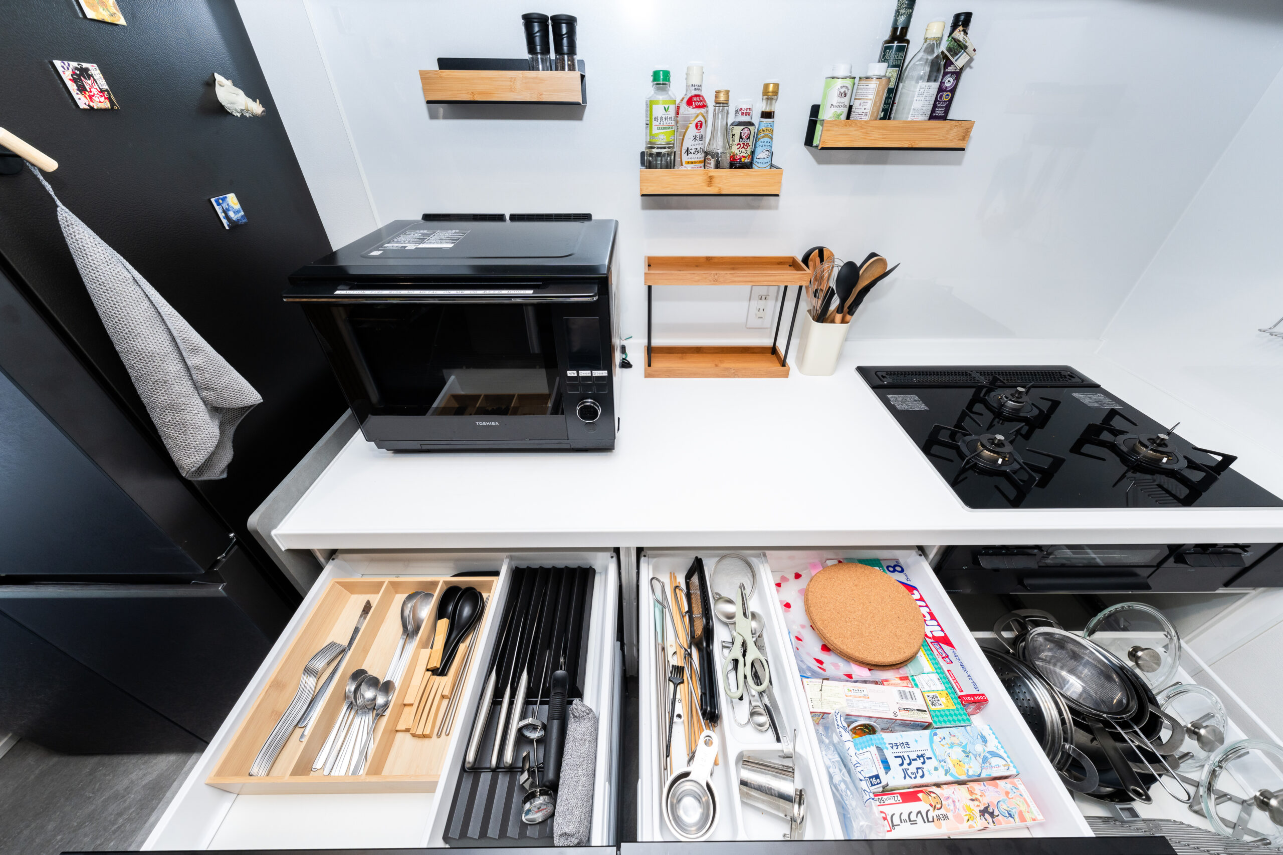 Digital nomads and hybrid workers rejoice; this unit comes equipped with 2 work from home stations! Each come complete with high quality 32” LG 4K monitors, as well as dual Japanese & English language keyboards and mice so you can do your best work from the comfort of this stunning penthouse condo.